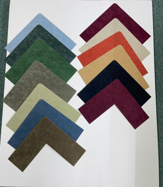 We have over 400 different matboards in stock! Stop in to check out the different types that are available for your product. Decorative mats work for most projects, but we also have suede, textured, leather, basketball/football textured, and more. Stop in an let us help you find the perfect mat for your next project.
